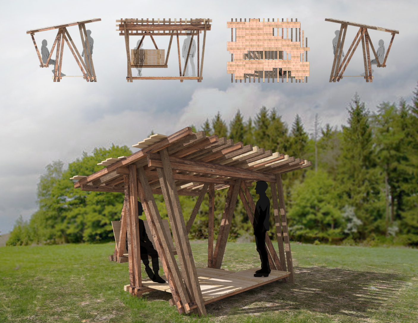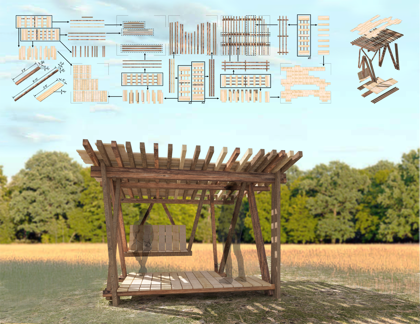 Proposal for a pavilion made of reused industrial pallets